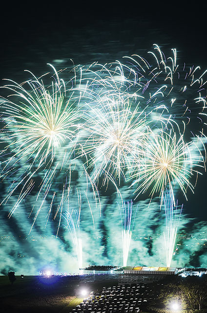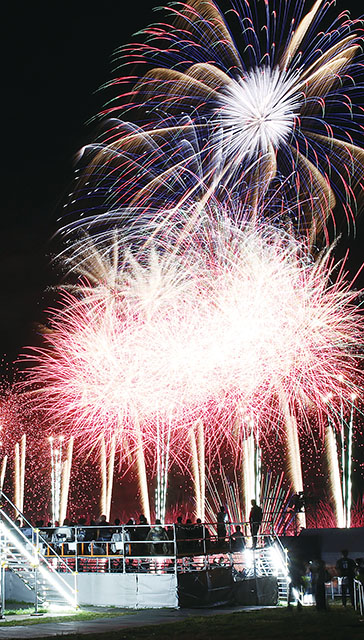 ▲大勢の観客を沸かせたダイナミックな打ち上げ花火