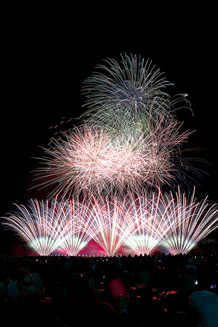 ▲次々に打ち上げられる花火が夜空を鮮やかに染めた